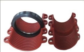 本產品有倆片或多片專用球墨鑄鐵件外殼,居中部位留有橡膠密封墊圈和專用螺栓組成快速接頭。最高工作壓力305MPa。